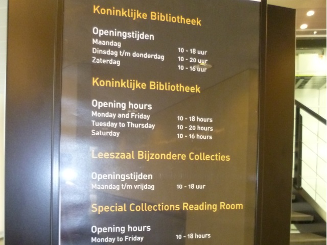 De Koninklijke Bibliotheek is als volgt bereikbaar: via het Centraal Station in DEN HAAG zie je bij de uiterst rechtse uitgang van de stationshal op 100 meter de ingang van de Koninklijke Bibliotheek.