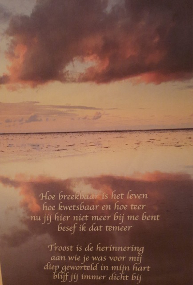 P.S. Intussen is Truus, de vrouw van Nico, overleden. Ze hebben haar tot het laatst zelf verzorgd. Het heeft een enorme impact op het gezin gehad. Het verlies betekent een groot verlies voor Nico, zijn kinderen en kleinkinderen.