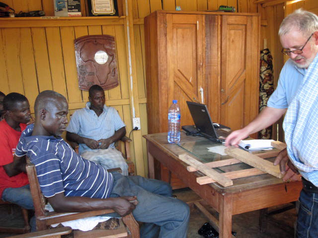 In februari 2011 ben ik naar Ghana geweest en heb daar een klein timmerbedrijf mogen adviseren op welke manier men een betere productie kan krijgen. De werkplaats was zeer primitief. Het personeel was selfmade timmerlui, die de basisregels om een goed product te maken niet kenden. Het is uitermate belangrijk hen zover te krijgen dat ze nauwkeuriger zijn om zodoende een beter product te kunnen maken zodat er minder afwerkhandelingen nodig zijn en een beter resultaat wordt verkregen. Het kost veel tijd hen te overtuigen en te motiveren samen te werken, zij moeten dit gezamenlijk realiseren. Ook hiervoor heb ik via het Hans Blankert fonds geld gekregen voor de aanschaf van 2e hands machines. Tot nu toe is dit nog niet gerealiseerd.
