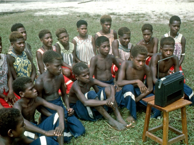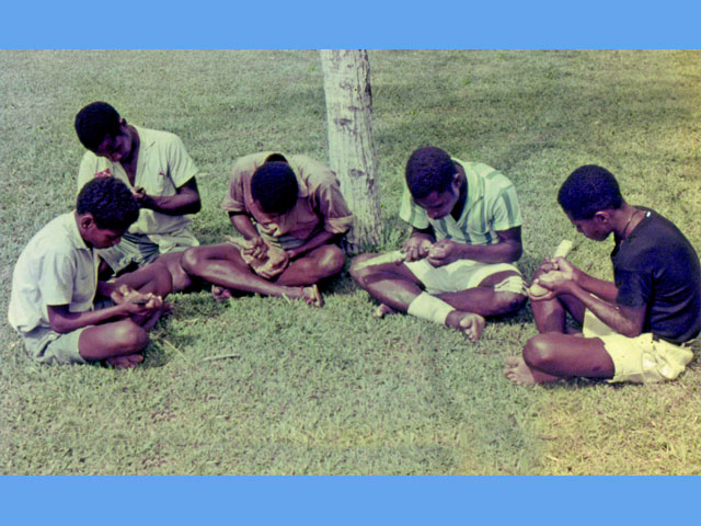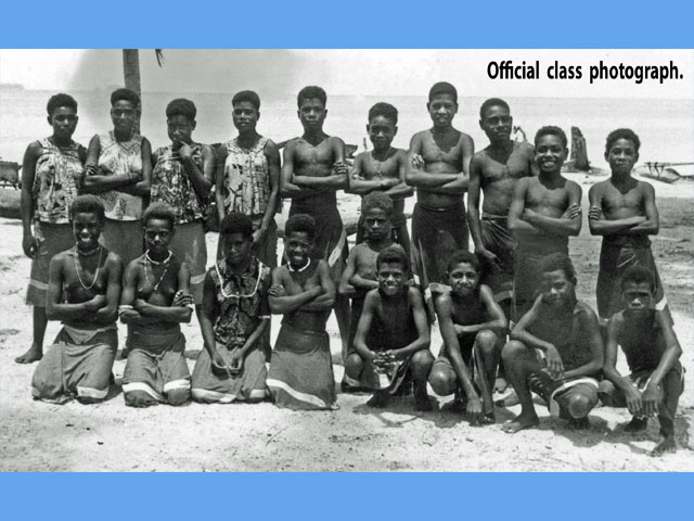 De school vormde een vreemde eend in het leefpatroon van de SIASSI eilandbewoners. We wisten nauwelijks iets over hun cultuur. Zij begrepen niet waarom hun kinderen al die vreemde dingen moesten leren, die niet in leven voorkwamen. Dit probleem kwam aan de orde toen ik les gaf in tandverzorging volgens ons leerplan, om tandbederf te voorkomen. Dit veroorzaakte veel plezier in de klas. Ze giechelden en doken onder hun tafeltje van het lachen. Het verbaasde mij tot een oudere leerling me vertelde dat ik onzin verkondigde. Alle kinderen hadden gezonde en sterke tanden. Tanden doen geen pijn! Het is hetzelfde als te zeggen: dagelijks hun nagels te polijsten, opdat ze geen pijn doen. Hun voedsel bevat nl. geen suikers en dus zijn ze gezonder. Ik realiseerde me dat ik beter leerling gericht les kon gaan geven dan me te houden aan het leerplan. Als simpele begrippen als ‘weg’, ‘fiets’ en ‘auto’ niet worden begrepen, dan weet je dat je in een andere wereld bent binnengetreden. Mijn pogingen om de leerlingen kennis te laten maken met de moderne technologie waren nauwelijks succesvol. Ze geloofden mijn verhaal niet dat de stem uit de transistor radio door de lucht uit Port Moresby kwam. Ze zouden graag mijn kostbare radio uit elkaar hebben gehaald om het mannetje binnenin te zien. Ik kon de hand leggen op een oude filmprojector. Met elektriciteit uit een dieselgenerator in Por, een paar oude films uit Port Moresby en een laken tegen de schoolmuur, kon ik de magie van de bewegende beelden laten zien. Ze waren diep onder de indruk en stom verbaasd over de grote ‘kano’s’ (de film ging over het Suez kanaal). De kinderen hielden van sporten. Ik probeerde ze te leren voetballen, maar ik merkte te laat dat het eiland te klein was. De bal lag meer in het water dan op het land. Daarom maakten we een basket veld. Ik organiseerde zwemwedstrijden vanuit de loopplank. Aangezien ze meer tijd op het water dan op het land doorbrachten, bestond er geen watervrees. Ze toonden graag hun zwemkunsten. Daarin waren ze goed … en dat konden ze beter dan de blanke man.